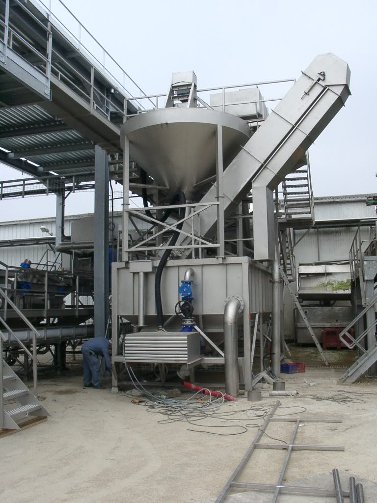 L’épierreur cyclonique fait tourbillonner votre produit dans un courant d’eau de telle manière que le produit quitte le cyclone via une ouverture latérale, alors que les pierres coulent vers le fond sous le poids de leur masse volumique plus importante.